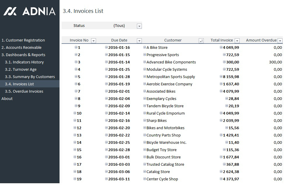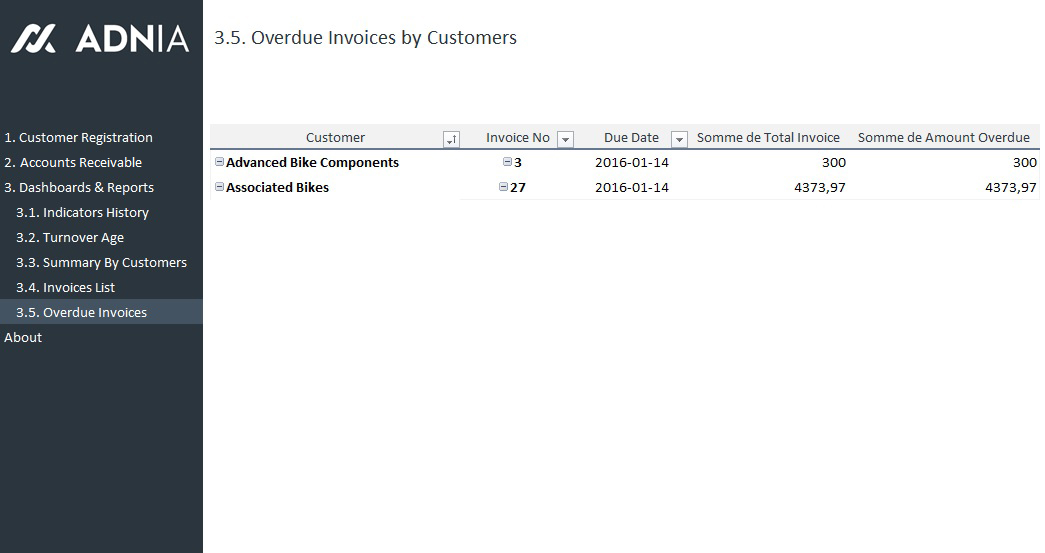 - Overdue Invoices by Customers