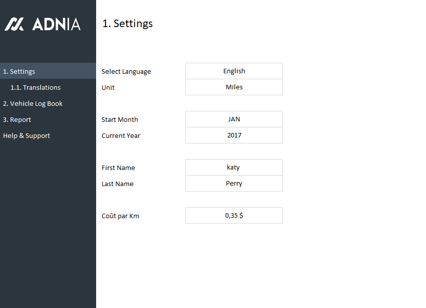 The Adnia Mileage Tracker is a multi-language Excel template that helps take the hassle out of mileage reporting. Use this spreadsheet template to record travel for mileage reimbursement requests, tax deductions, or vehicle maintenance.