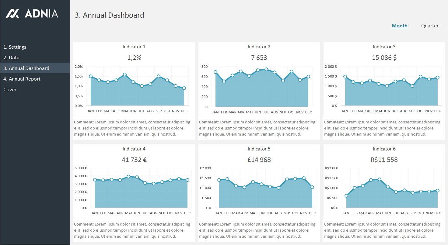 The Annual Report is an Excel Template developed to help companies make engaging and impressive reports easily. Use this spreadsheet template to turn old reports into visually appealing documents that people will actually read. Impress your colleagues with your organization and communicate with them more effectively.
