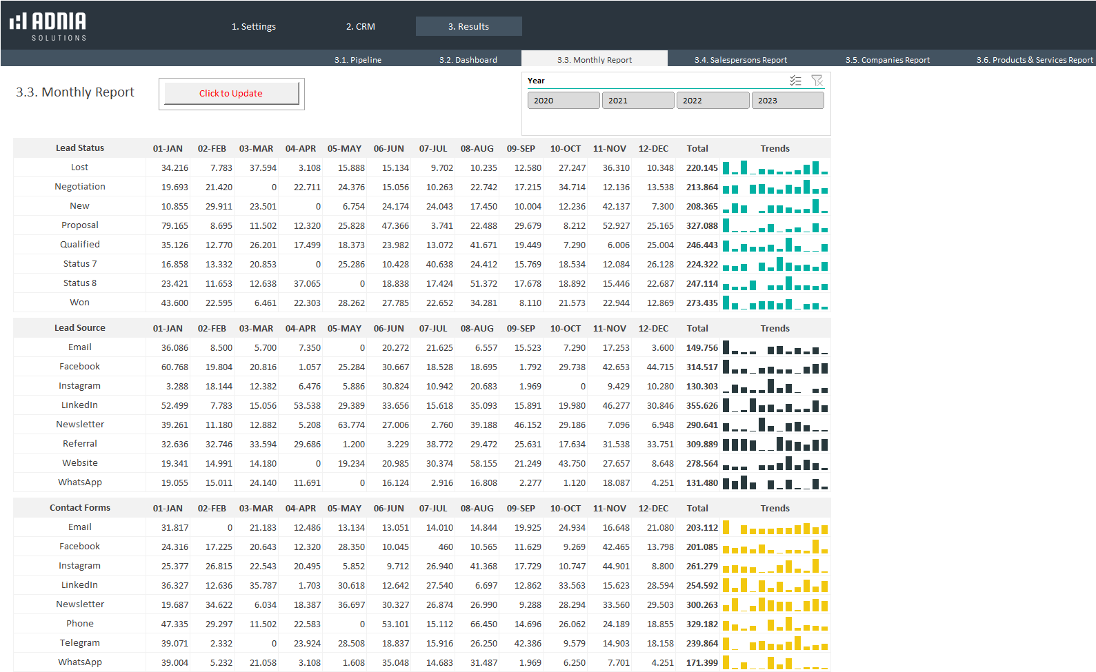 - Report Diversification: We’ve introduced four new reports – Monthly Report, Salespersons Report, Companies Report, and Products & Services Report.