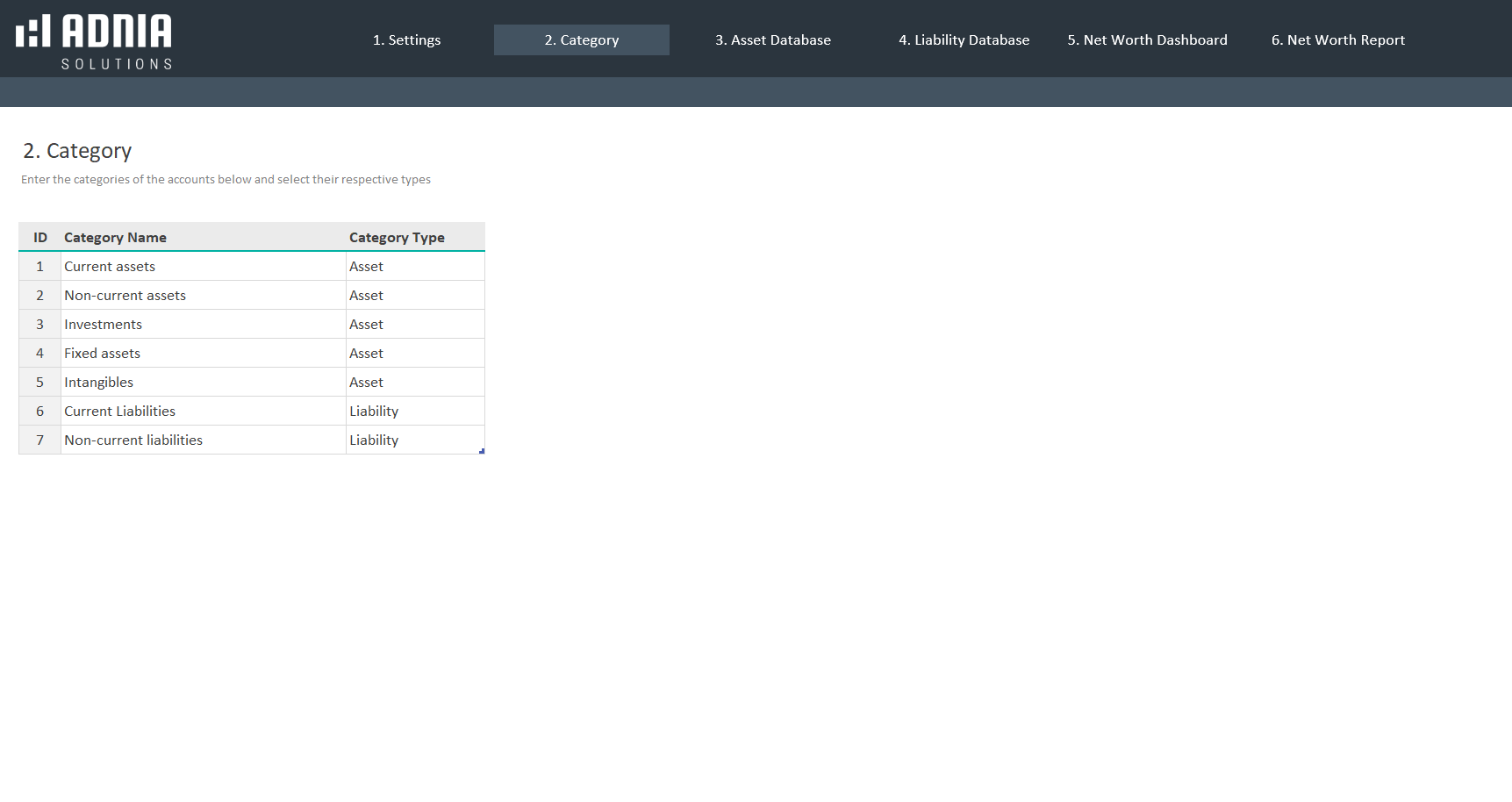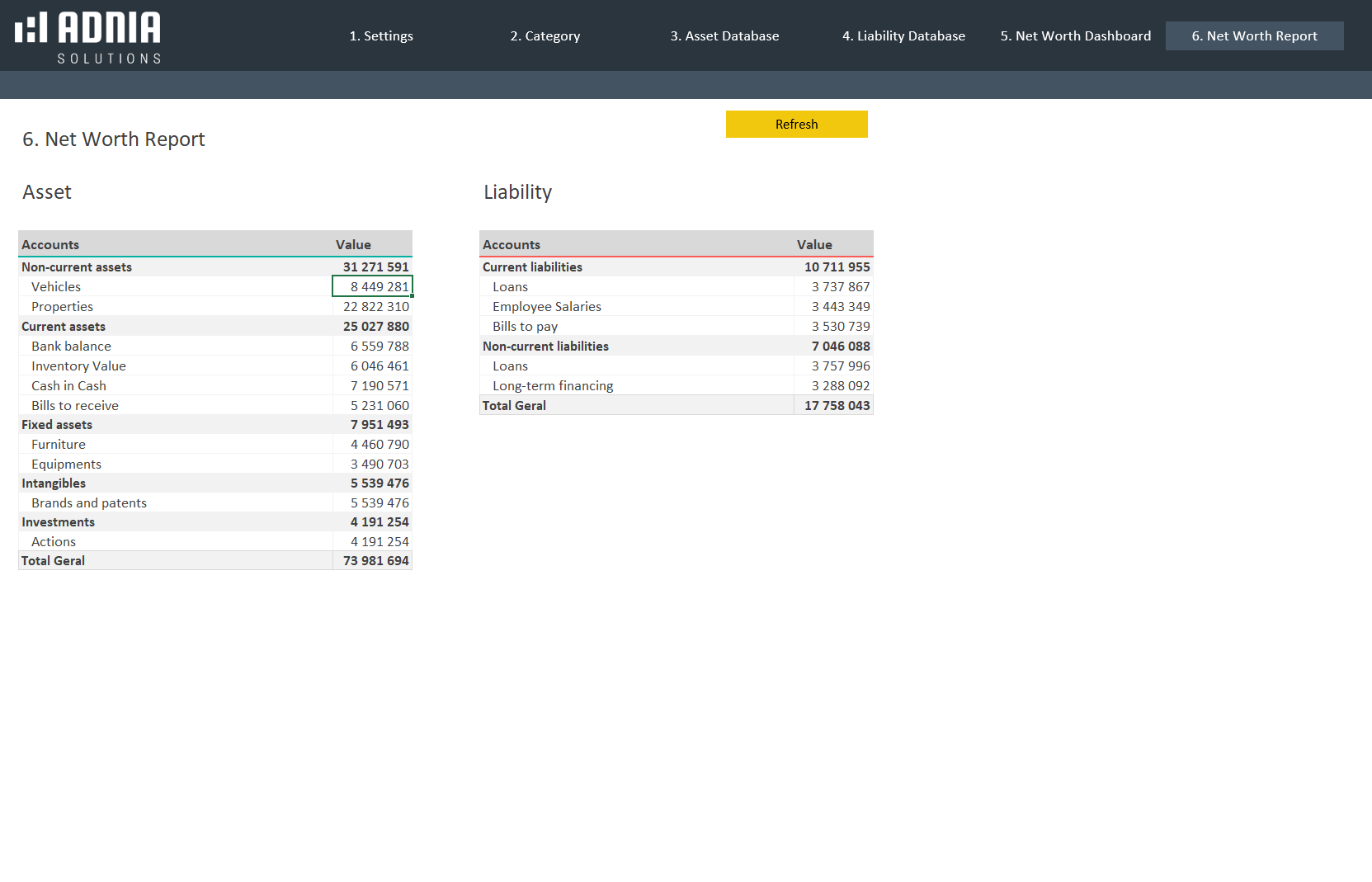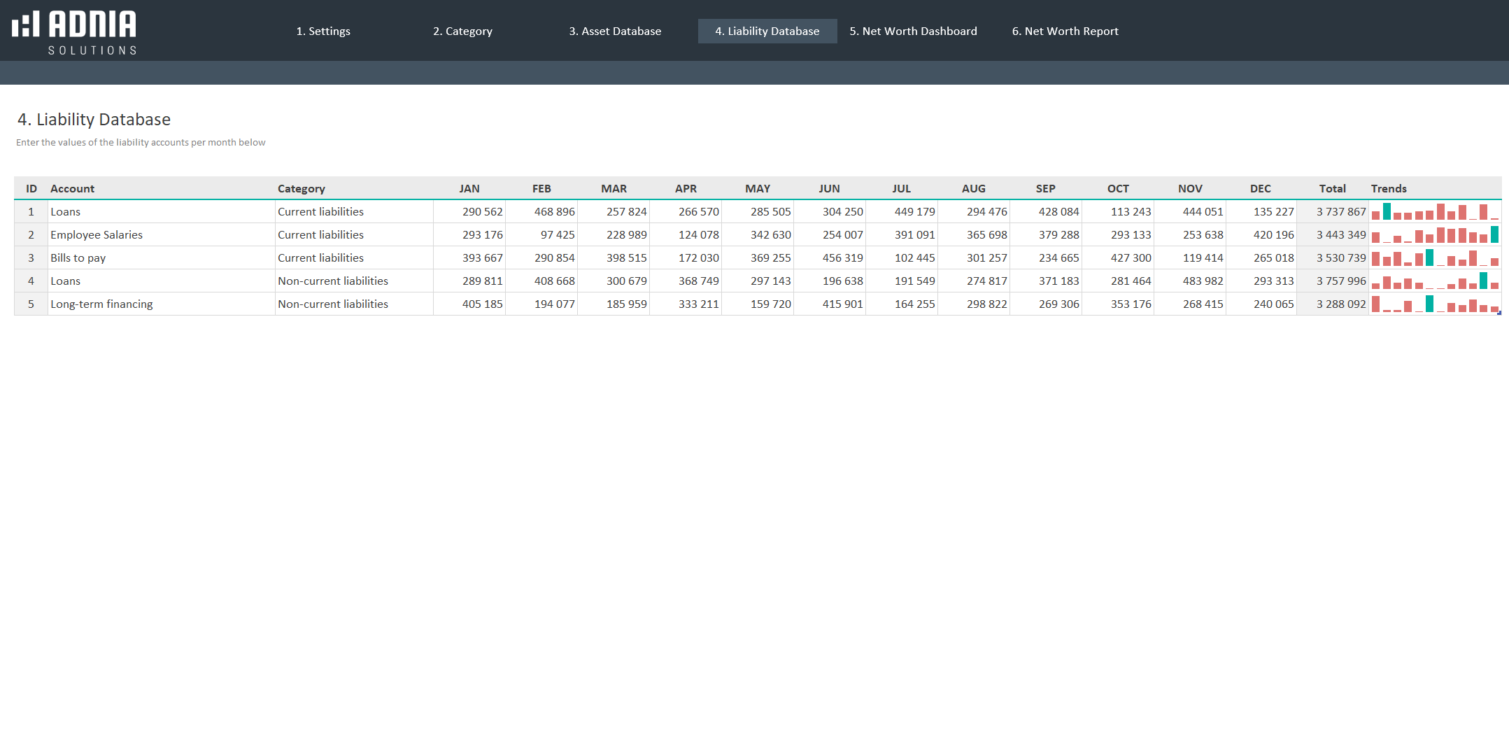 - Spreadsheets ready for printing without Adnia Solutions logo