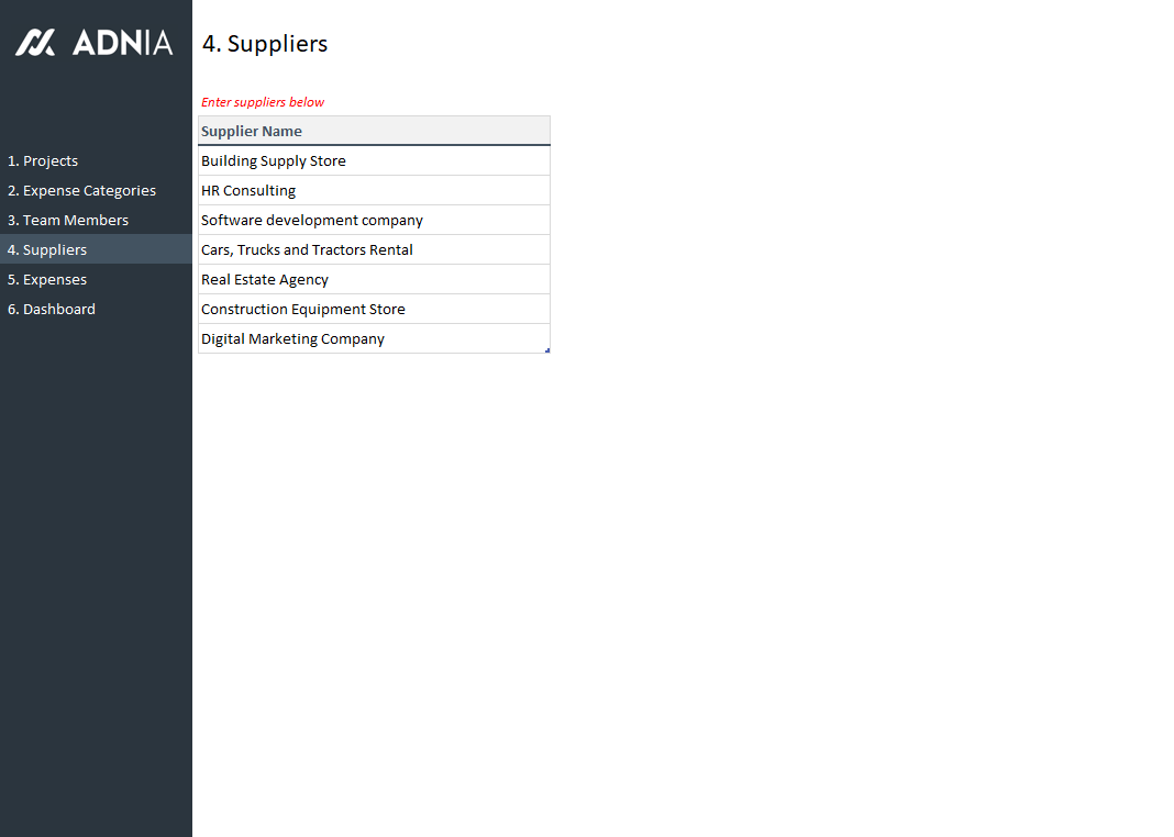 - Spreadsheets ready for printing without Adnia logo