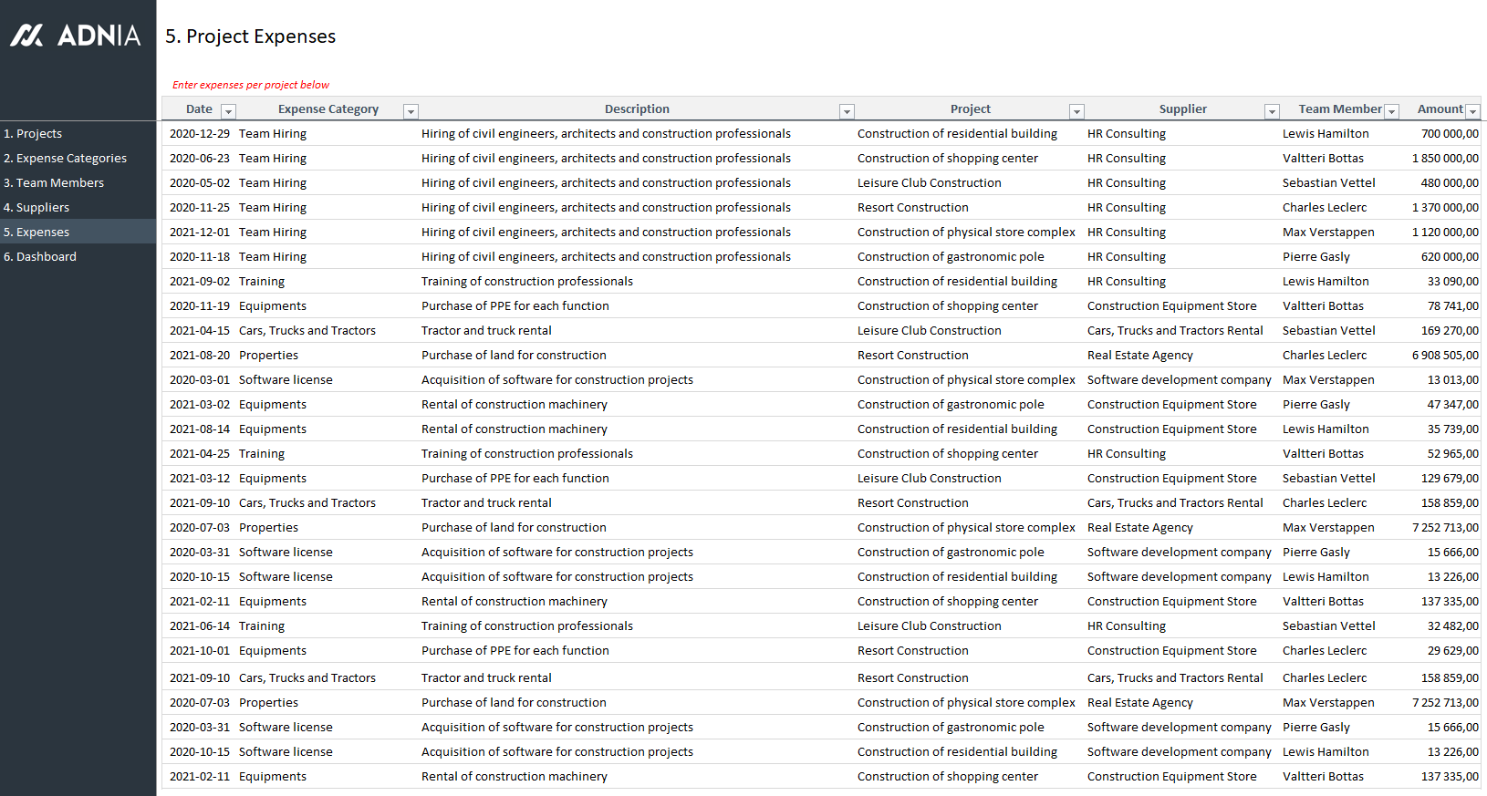 - Monitor project expenses easily. You can control several projects in the same template.